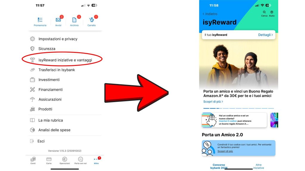Troverai un banner verde nella sezione “isyReward” o una notifica in app per riscattare il tuo premio.