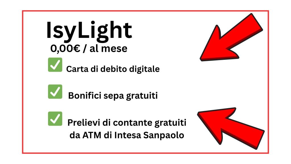 Con il conto isyLight, gratuito e senza deposito minimo, puoi:
