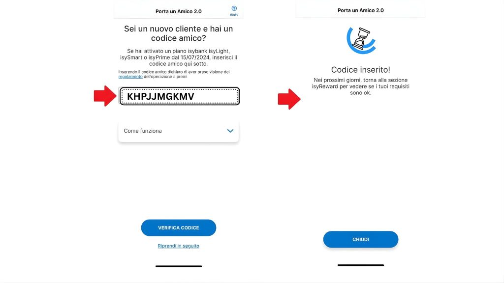 Aderisci alla promozione e inserisci il codice amico KHPJJMGKMV entro 15 giorni dall’attivazione del conto.